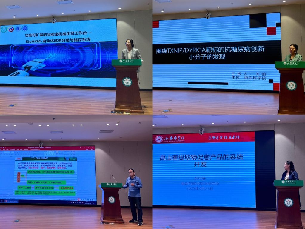 成果发布环节,四位科研人员进行了成果路演。“功能可扩展的实验室机械手臂工作台”大幅提高实验室工作效率与数据精准度;“围绕TXNIP/DYRK1A靶标的创新小分子抗糖尿病活性研究”为糖尿病治疗提供了新思路;“功能电子胃镜消泡乳”与“二藤风湿药酒”在消化系统疾病诊断及风湿病治疗领域前景可期;“高山蓍提取物促愈产品系统开发”为伤口愈合和皮肤修复提供了创新方案。