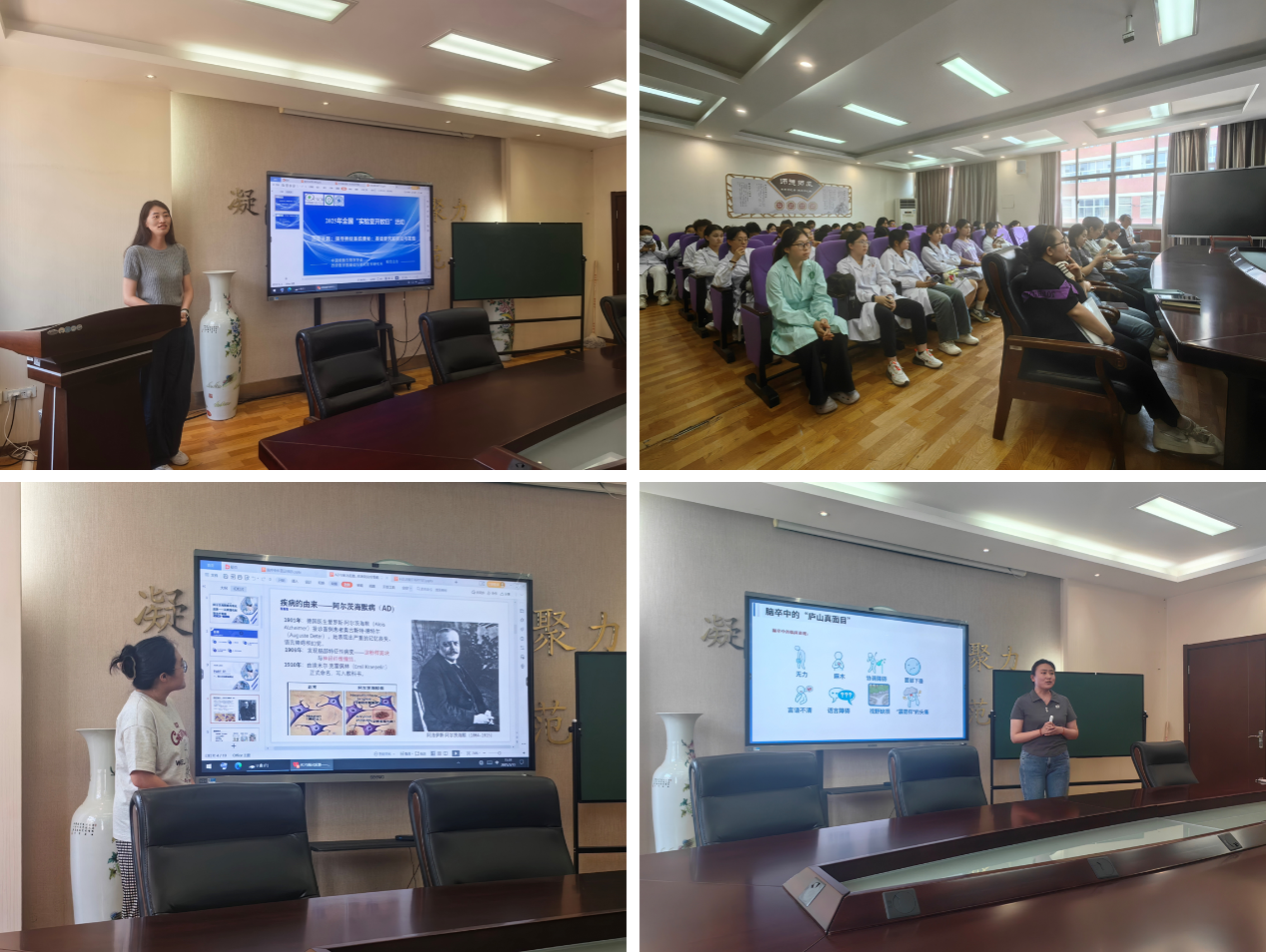 5 月 13 日,实验室开放日首场活动——“探寻神经系统奥秘:基础研究的前沿与发现”科普讲座在实验 A 楼拉开帷幕。基础医学研究所王杉博士向在场师生介绍了活动背景、流程及重要意义,表示本次活动旨在让科学走出实验室,让青年走近科研。随后,两位神经病学专业优秀研究生带来精彩分享:张婉婷以“阿尔茨海默病与氧化应激——从病理机制到治疗策略”为题,系统解读了阿尔茨海默病的研究现状,深入剖析氧化应激在疾病发生发展中的核心机制,并展望了当前防治策略与未来挑战。她通过“神经细胞的氧化损伤如同苹果的氧化变色”等生动比喻,将复杂的神经病理学知识转化为通俗易懂的语言;冯玥聚焦“脑卒中科普及预防”,从疾病类型、典型症状、危险因素切入,结合临床案例详解了治疗手段与预防策略,引导同学们树立“早预防、早发现、早干预”的健康理念。