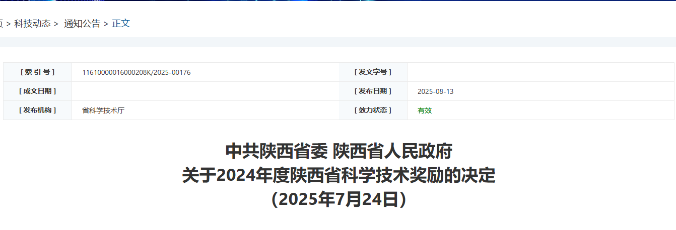 我校荣获陕西省科学技术进步二等奖