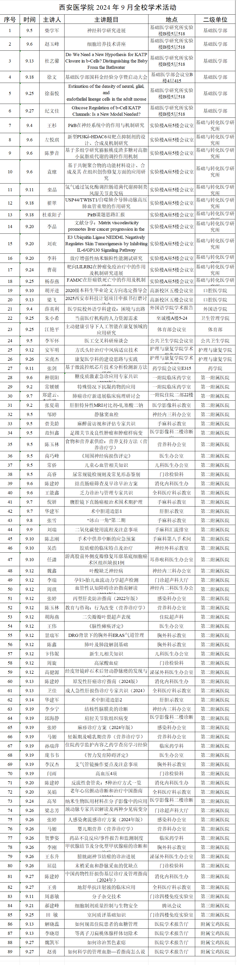 2024年度9月西安醫(yī)學(xué)院學(xué)術(shù)講座擬安排