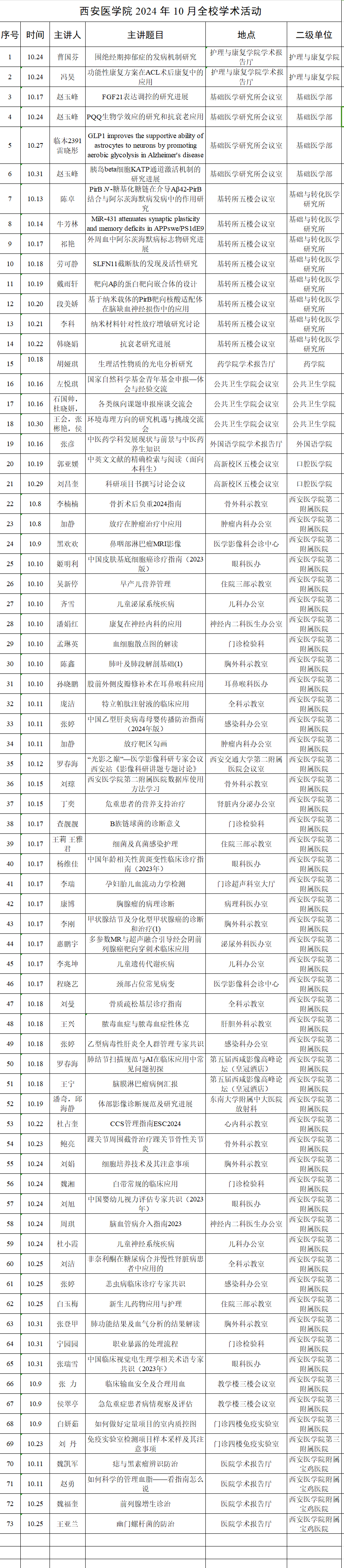 2024年度10月西安醫(yī)學(xué)院學(xué)術(shù)講座擬安排